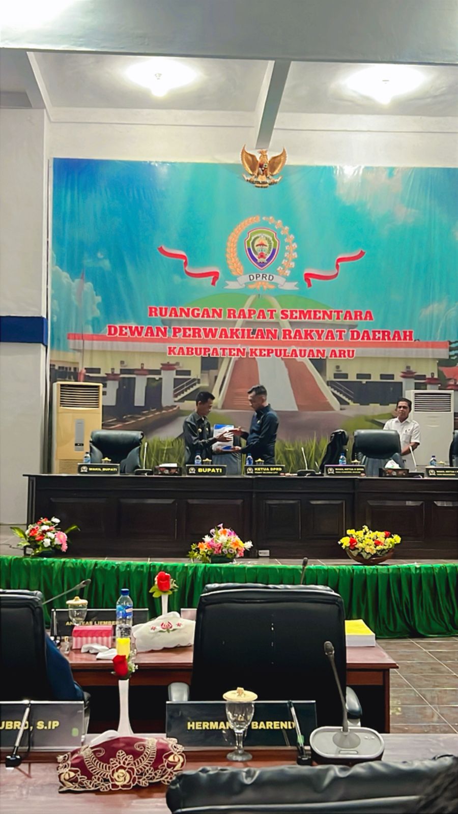 Selengkapnya →Ruang Rapat Sementara; Rapat Paripurna DPRD Kabupaten Kepulauan Aru dalam rangka Penyampaian Nota Pengantar Rancangan Peraturan Da...